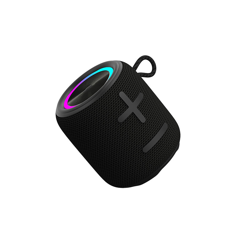 This home speaker features a lightweight and portable design and comes with a carrying strap for easy portability, perfect for use at home, outdoors, or while traveling. Water-resistant, it withstands everyday splashes and outdoor environments, ensuring peace of mind. Built-in RGB lighting changes colors to the beat of the music, creating a vibrant ambiance and enhancing your entertainment experience. Bluetooth wireless connectivity allows for easy pairing with your phone, tablet, or other device for wire-free listening.