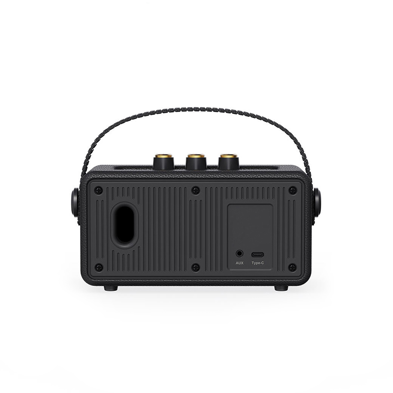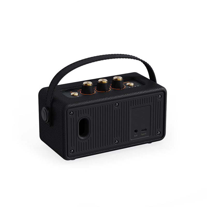This retro speaker blends classic vintage styling with modern technology, boasting a simple and elegant design that exudes a rich nostalgic feel. The surface features a delicate textured finish for a soft, comfortable touch and a premium feel. The durable and soft leather handle makes it easy to carry. The speaker features a high-end rotary knob design with smooth rotation and optimal damping, providing an excellent operating experience. Bluetooth wireless connectivity allows for quick connection to phones, tablets, and other devices, with stable signal and strong compatibility.