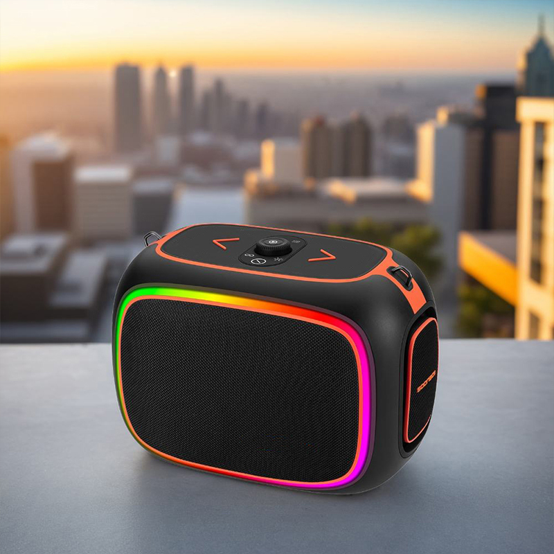 This speaker combines ABS plastic, fabric, and iron metal for a durable yet modern design. Featuring Bluetooth 5.3 connectivity and compatibility with AUX, USB, and TF card inputs, it accommodates diverse playback needs. Equipped with dual handheld microphones, it’s ideal for family gatherings, karaoke, dance parties, and outdoor events. Built-in multicolor RGB lighting effects enhance the party atmosphere.