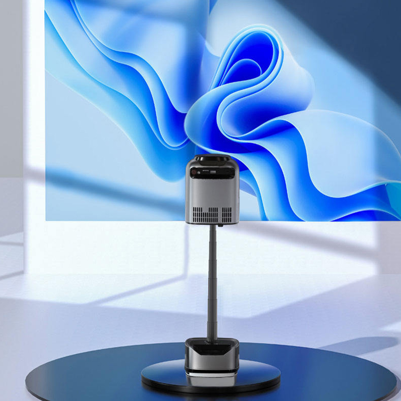 This smart projector features a concealed adjustable stand that allows for flexible height and angle adjustments. When folded, it seamlessly integrates with the projector, creating a simple and attractive appearance that makes it easy to carry and place. Whether for home viewing, office presentations, or travel, it can easily adapt…