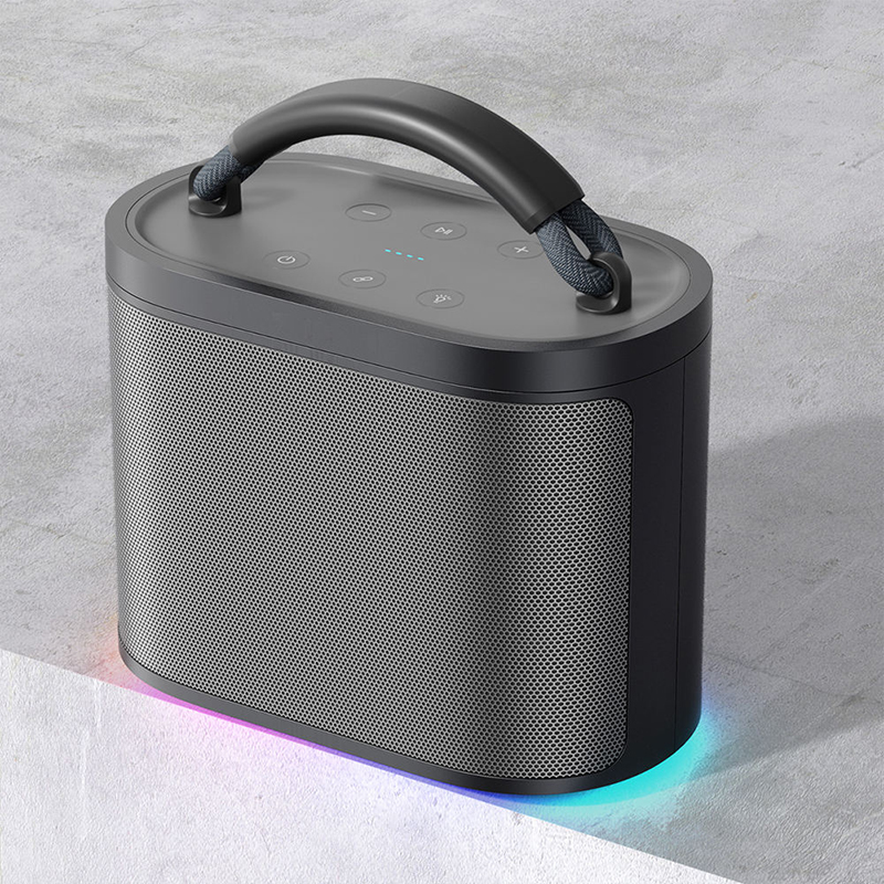 This outdoor speaker is designed for family gatherings, outdoor activities, and computer audio playback. Crafted from ABS plastic and fabric, it combines portability with durability. Featuring Bluetooth 5.3 for stable and reliable wireless connectivity. Dual-driver speaker design delivers crisp stereo sound, complemented by RGB lighting effects to create an energetic…