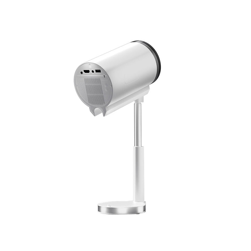 This smart projector features a 90° rotating pan-tilt design for flexible projection angle adjustment. It supports multi-directional projection, allowing for flexible viewing in various scenarios, whether on a tabletop, wall, or ceiling. It supports 720P HD resolution, delivering crisp, detailed images with natural, rich colors for a vivid and lifelike visual experience. Equipped with a manual focus function, users can precisely adjust the focus based on projection distance, quickly achieving the ideal, clear image. Operation is intuitive and convenient. Built-in high-quality speakers deliver rich, three-dimensional sound, eliminating the need for external speakers for an immersive listening experience. A high-speed cooling system, featuring efficient air ducts and a silent fan, ensures stable performance and low noise even during extended use.