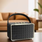 This retro speaker combines classic and modern design with a handy carry handle for easy portability, perfect for home, outdoor gatherings, or travel. The built-in RGB lighting on the top changes colors with the rhythm of the music, creating a vibrant atmosphere and enhancing the entertainment experience. Built-in high-quality speakers support stereo output, delivering rich bass and clear treble for an immersive listening experience, making every song more vivid and moving. Bluetooth wireless connectivity allows for quick pairing with phones, tablets, and other devices, freeing you from the shackles of wires for convenient music playback.