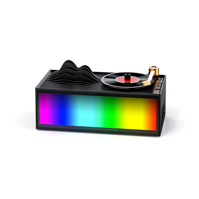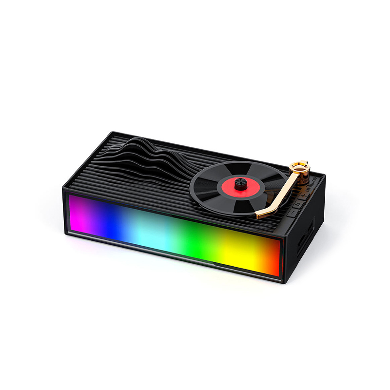 This retro speaker features a record-themed design, blending classic vintage styling with modern technology to add a unique artistic touch to any home. The top features RGB lighting that changes colors with the rhythm of the music, creating a vibrant atmosphere and enhancing the viewing and entertainment experience. Built-in high-quality speakers support surround sound, delivering deep bass and crisp treble for an immersive sound experience. Bluetooth wireless connectivity allows for quick pairing with phones, tablets, and other devices, freeing you from the shackles of wires for convenient wireless music enjoyment.